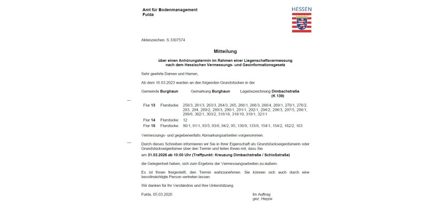 Mitteilung über einen Anhörungstermin